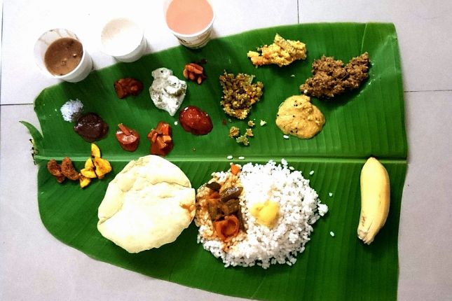 Traditional Kerala food served on banana leaf during Kerala tour packages